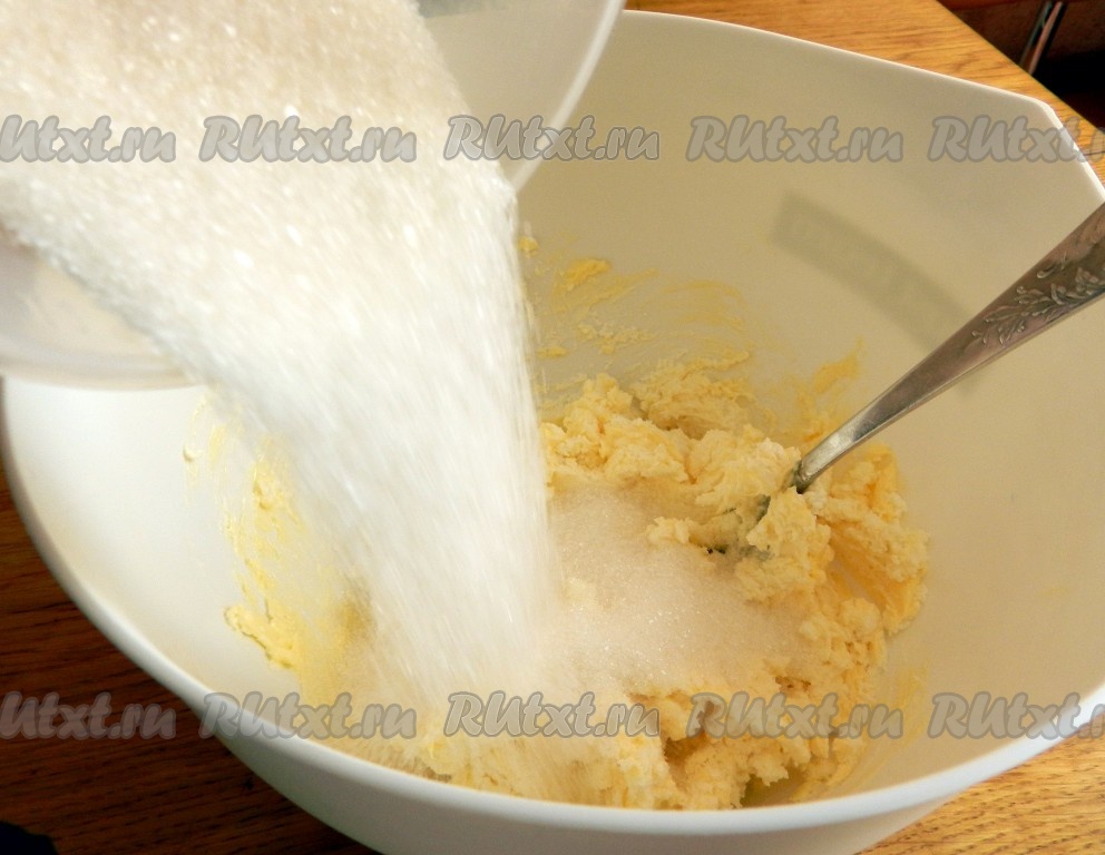 Всыпать сахар и ванильный сахар, перемешать вилкой.