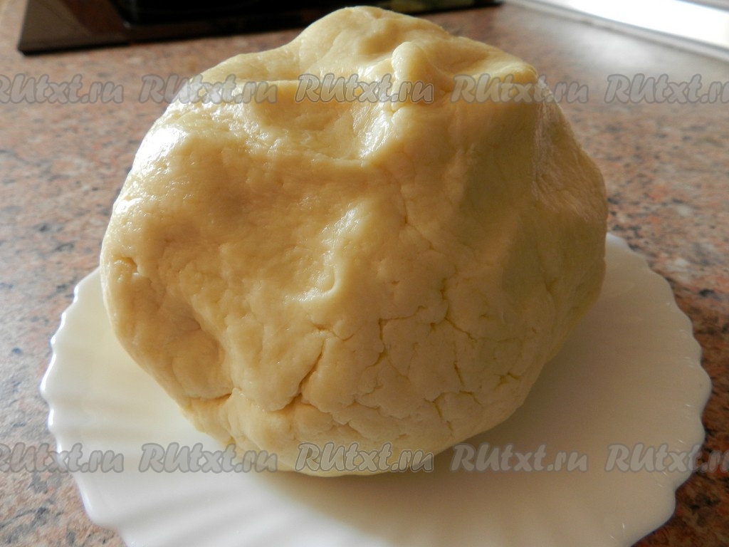 К полученной массе добавить 1 стакан муки и разрыхлитель, растереть вилкой до однородности. Частями добавляя оставшуюся муку, вначале перемешивать тесто вилкой (или столовой ложкой).