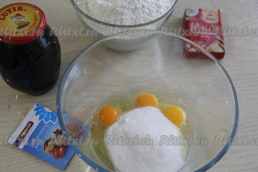 В глубокой миске соединить яйца и сахар.