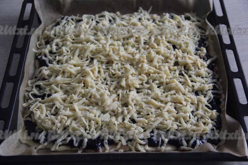 Достать тесто из морозилки и натереть его на крупной тёрке поверх варенья.