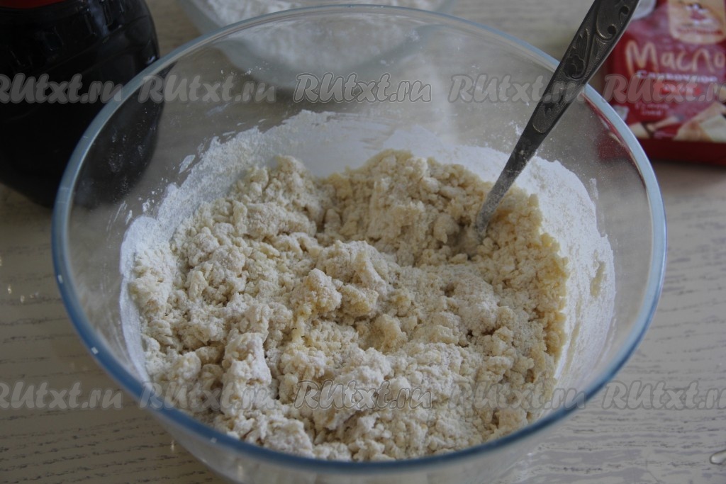 Перемешать массу вилкой, она получится рассыпчатой.