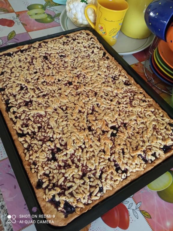 Поставить противень в разогретую до 200 градусов духовку и выпекать тёртый пирог со смородиновым вареньем минут 35. Поверхность выпечки должна стать слегка золотистого цвета.