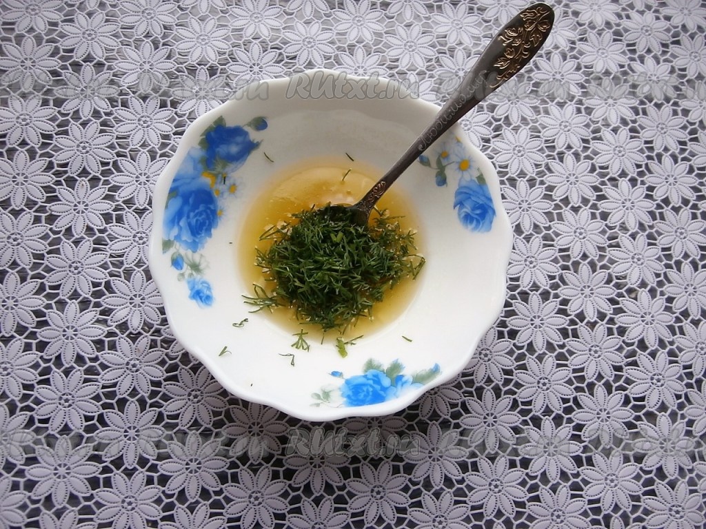 Сюда же добавить измельчённый укроп, перемешать и заправка готова.