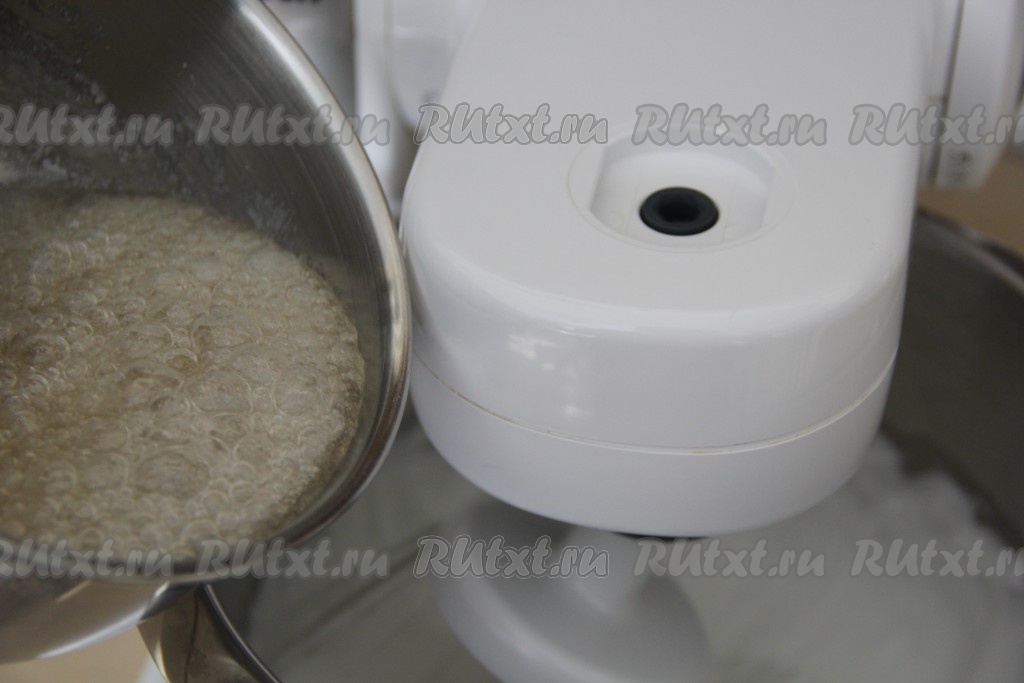Сироп в процессе варки приобретёт слегка карамельный цвет. Снять сироп с огня и тонкой струйкой влить во взбитые белки, не переставая взбивать миксером.