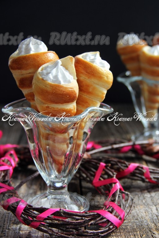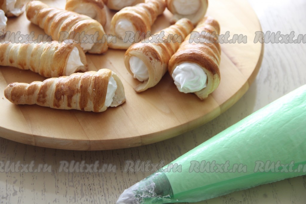 Трубочки, приготовленные из слоёного теста, с начинкой из нежнейшего белкового крема, просто восхитительны и внешне, и на вкус!