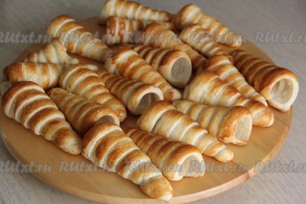 Многие помнят слоёные трубочки с белковым кремом, которые продавались в каждой кулинарии. Такие пирожные можно приготовить и в домашних условиях из готового слоёного теста. Для этой выпечки прекрасно подойдёт слоёное и дрожжевое, и бездрожжевое тесто. Из данного количества продуктов получается 20-22 наивкуснейших трубочки с нежным заварным кремом. Такая красивая выпечка украсит любое чаепитие!