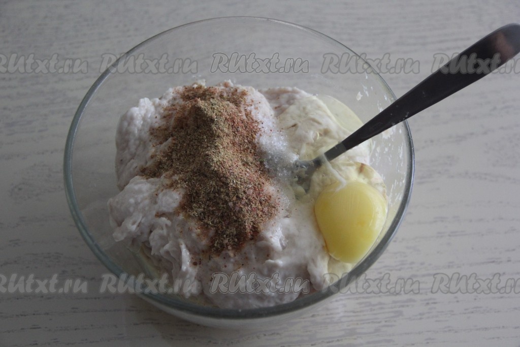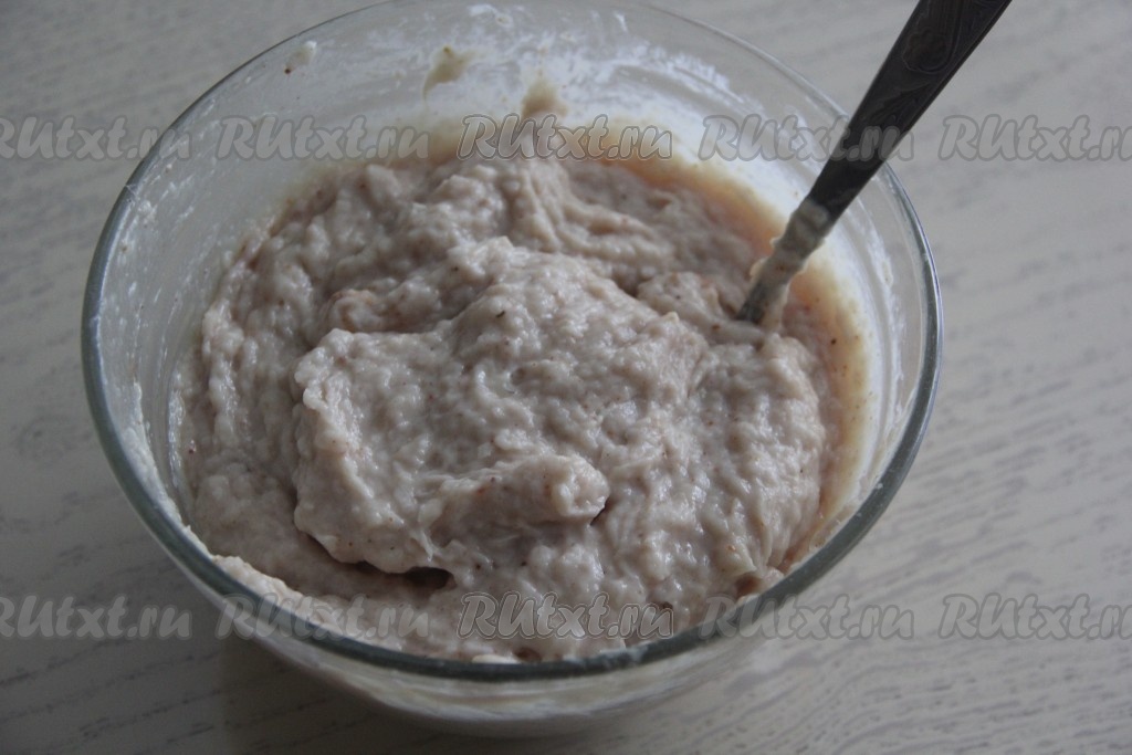 При помощи столовой ложки перемешать тщательно фарш, он получится не густой и вязкий, больше похожий на суфле.