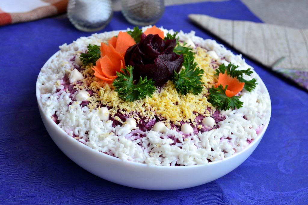 Подать очень вкусный, воздушный салат "Селёдка под шубой" к столу.