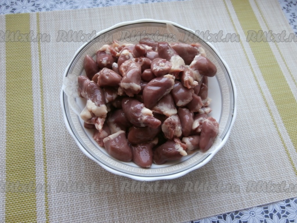 Куриные сердечки вымыть, дать стечь воде.