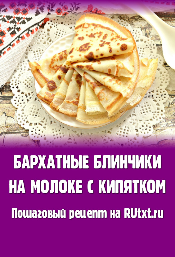 Есть множество кулинарных рецептов приготовления блинного теста. Обязательно попробуйте и этот вариант замеса теста на молоке с добавлением кипятка. Блинчики получаются тонкими, нежными, с приятной бархатистой структурой. Чтобы блины были мягкими, после снятия со сковороды, каждый блин рекомендуется смазать растопленным сливочным маслом. Но мне нравятся блинчики с хрустящими краями, поэтому я маслом их не смазываю. Уверена, такие бархатные блинчики понравятся и взрослым, и ребятишкам!