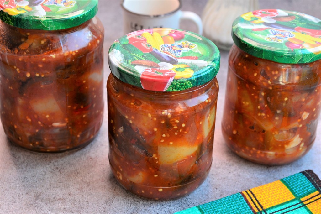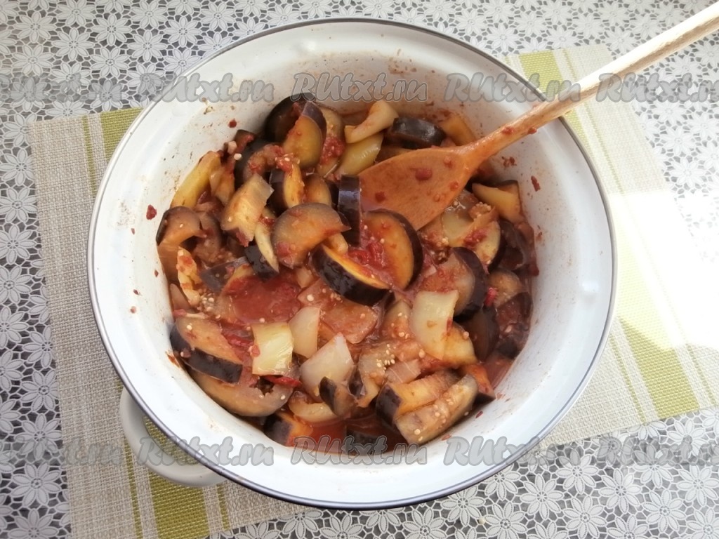 Баклажаны с болгарским перцем и чесноком в томате на зиму