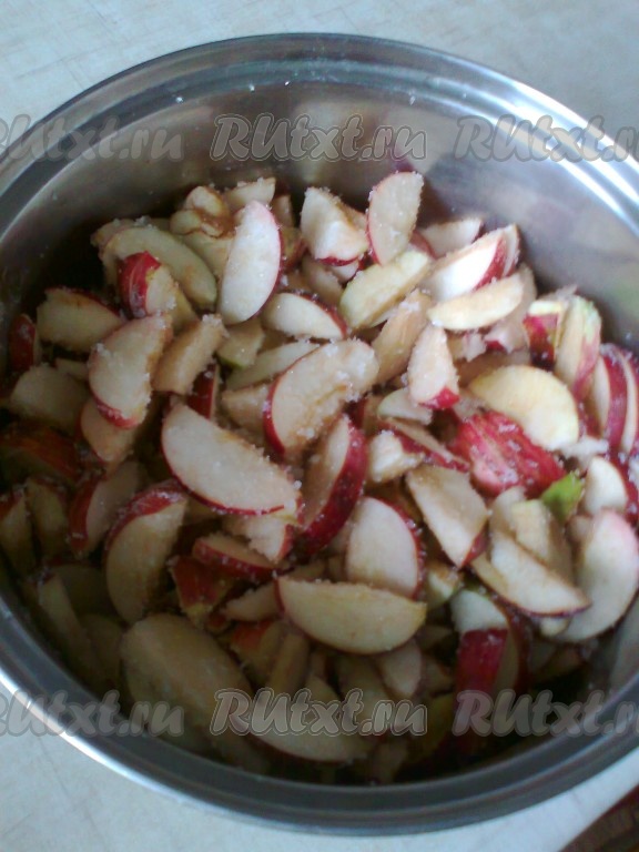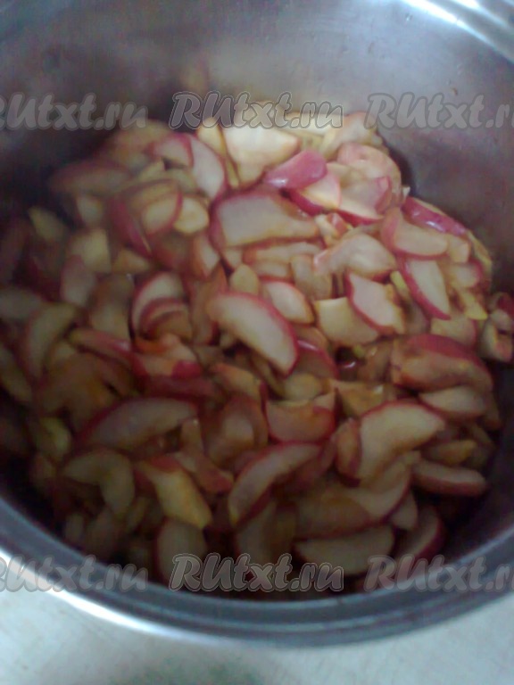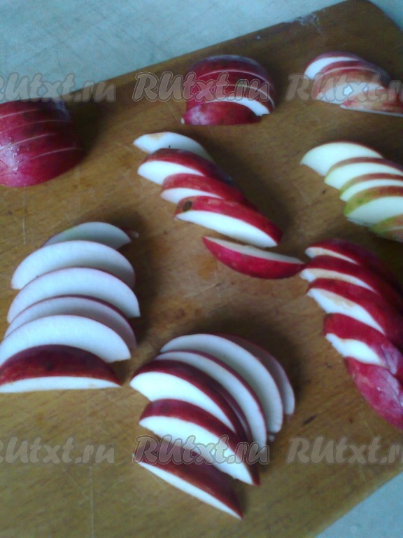 Затем нарезать яблоки тонкими дольками (толщина долек должна быть такой, чтобы они не разварились).