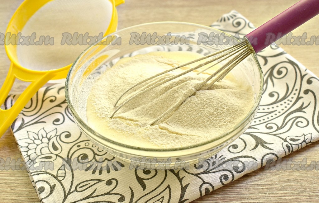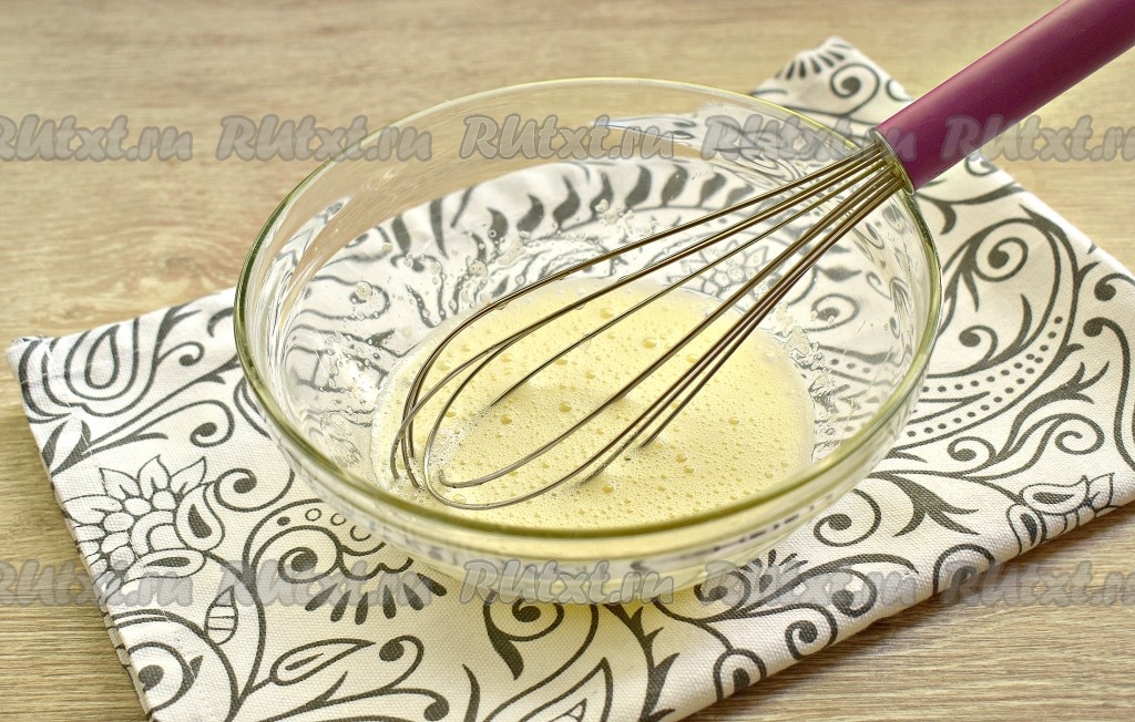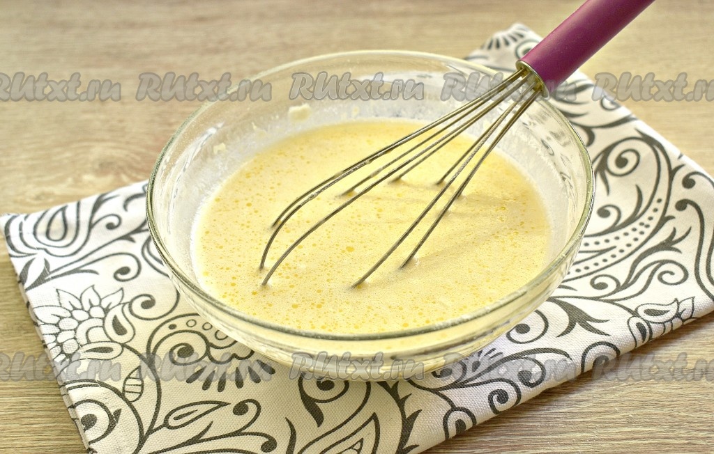Взбиваем содержимое миски до однородности венчиком (в течение 2-3 минут) или миксером (в течение 1 минуты).