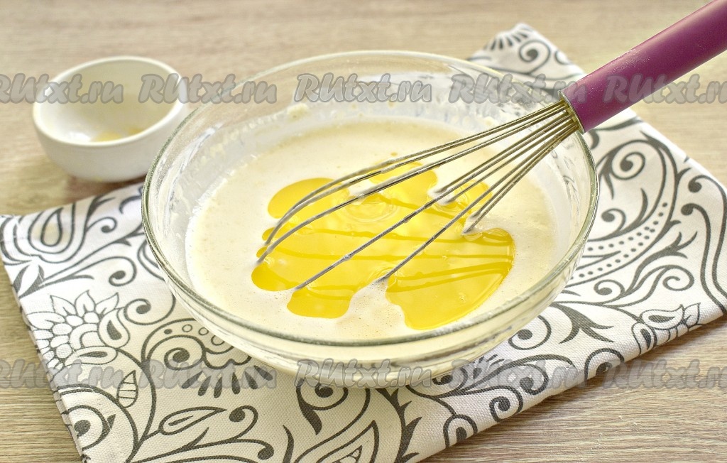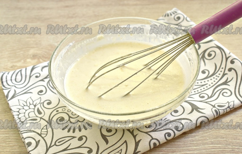 Тщательно перемешиваем, чтобы получилось жидкое тесто без комочков.