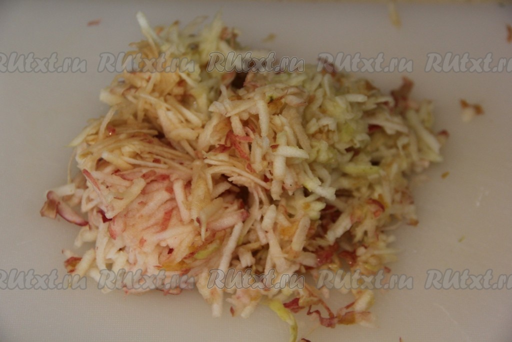 Яблоки вымыть и натереть на средней тёрке (очищать яблоки от шкурки я не стала).