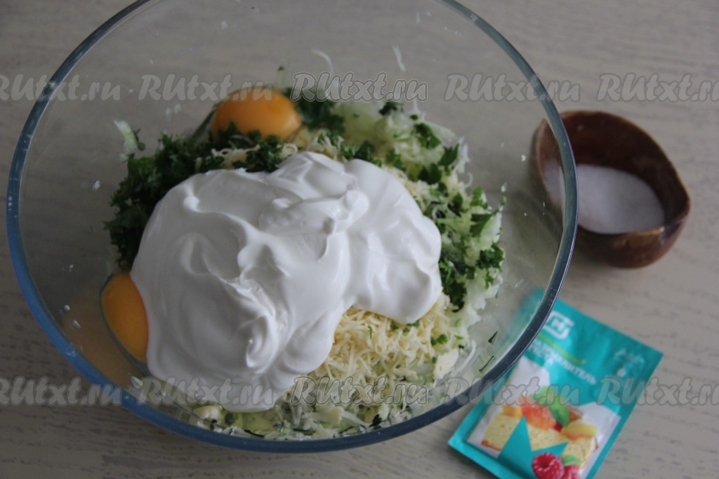 Кабачково-сырное тесто получится не очень густым.