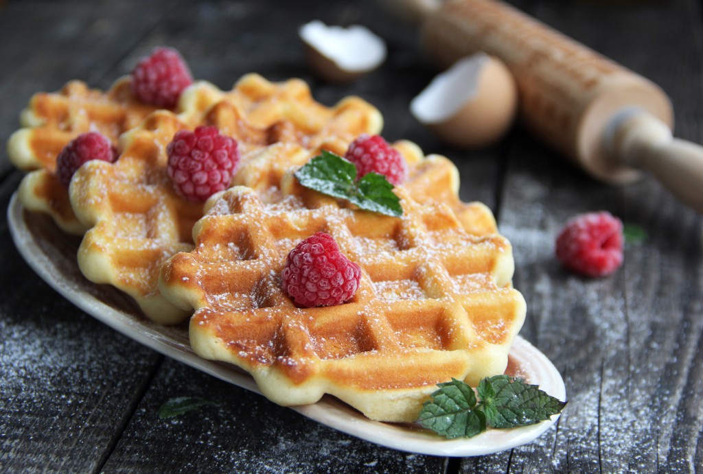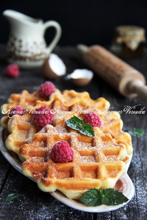 Вкусные, нежные бельгийские вафли, приготовленные из теста, замешанного на сметане, подать к чаю, посыпав сахарной пудрой и украсив свежими ягодами.