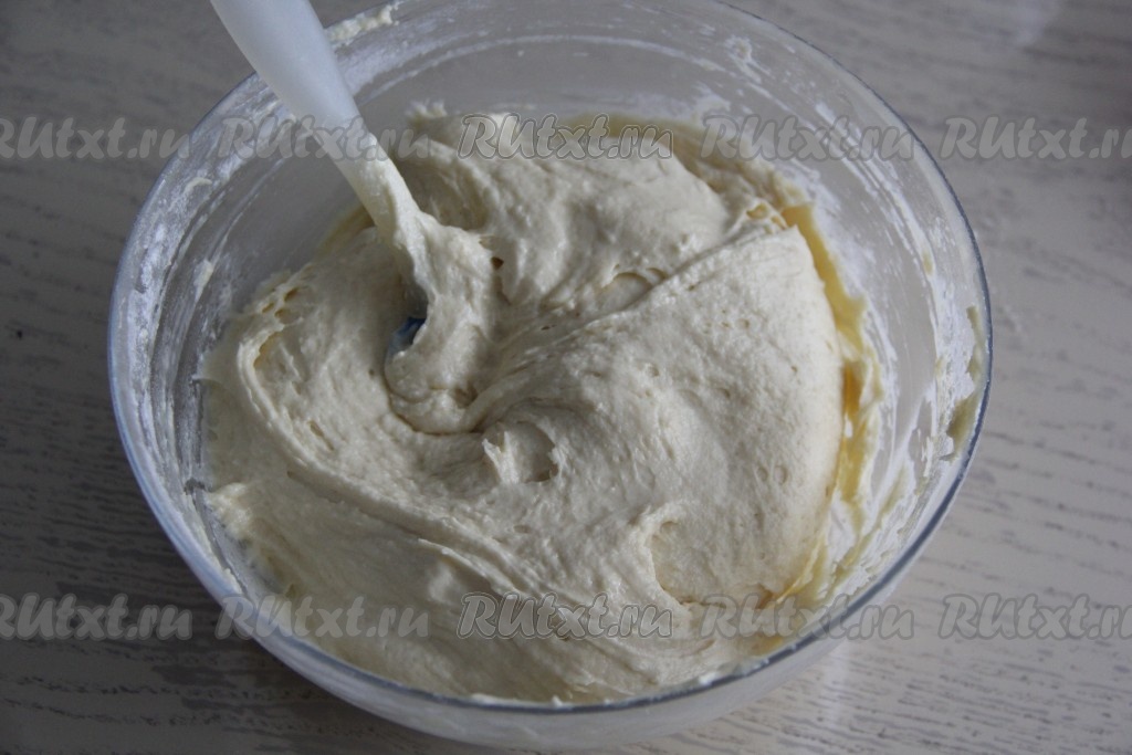 Когда масса станет однородной, всыпать соль, разрыхлитель и начать небольшими порциями добавлять просеянную муку.