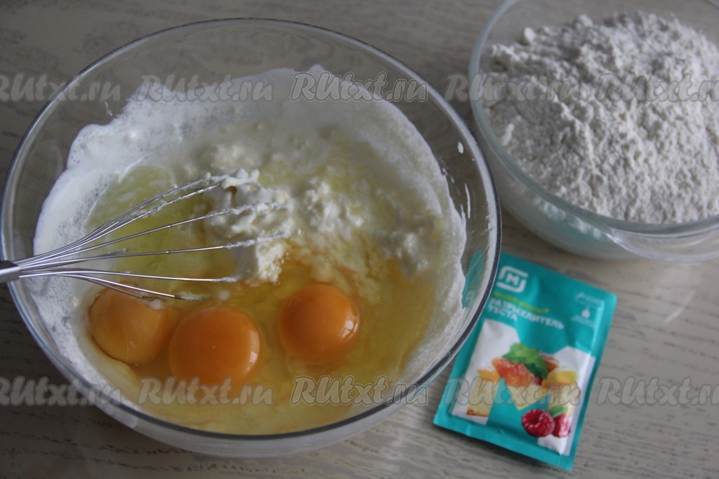 Хорошо перемешать венчиком, добавить яйца и перемешать до получения однородной массы.