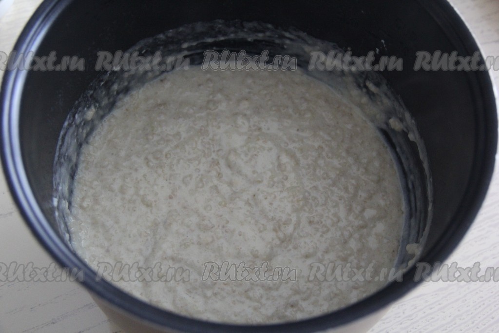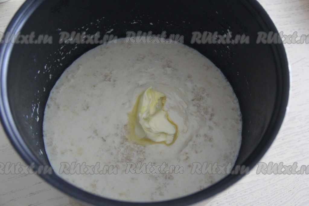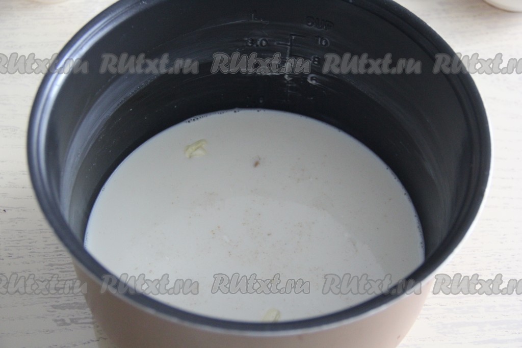 Влить молоко, перемешать, затем смазать края чаши маслом.