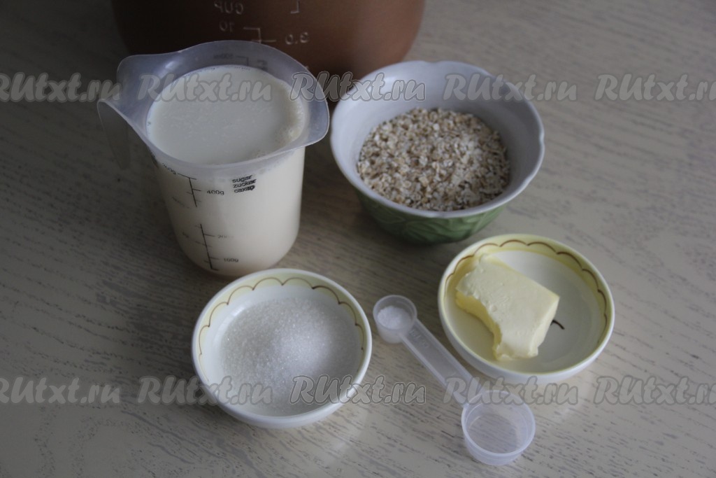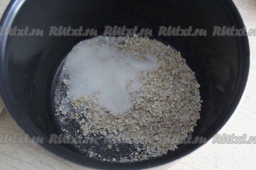 Овсяные хлопья, соль и сахар всыпать в чашу мультиварки.