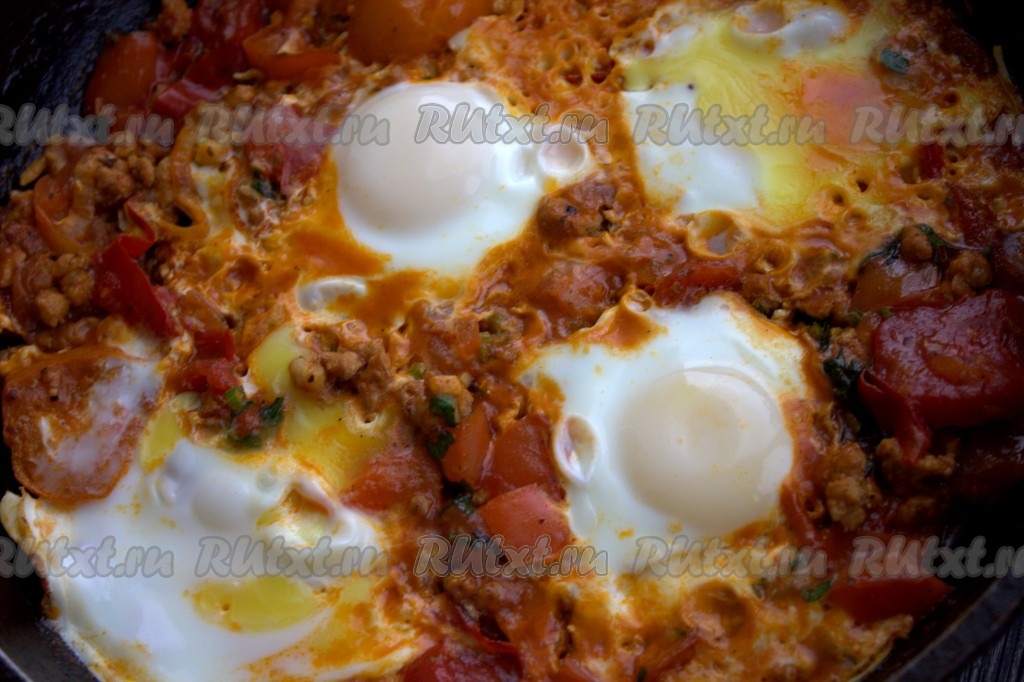 Если вам захотелось разнообразить меню, тогда обратите внимание на рецепт приготовления на сковороде сытной израильской яичницы "Шакшука" с фаршем. В этом сочном, ароматном блюде отлично сочетаются тушёные овощи, мясной фарш и яйца, создавая очень гармоничный, насыщенный вкус. Фарш можно взять любой, я использовала куриный. Уверена, шакшука, приготовленная по этому рецепту, понравится всем без исключения!