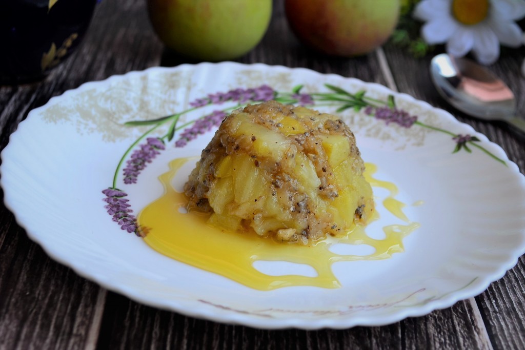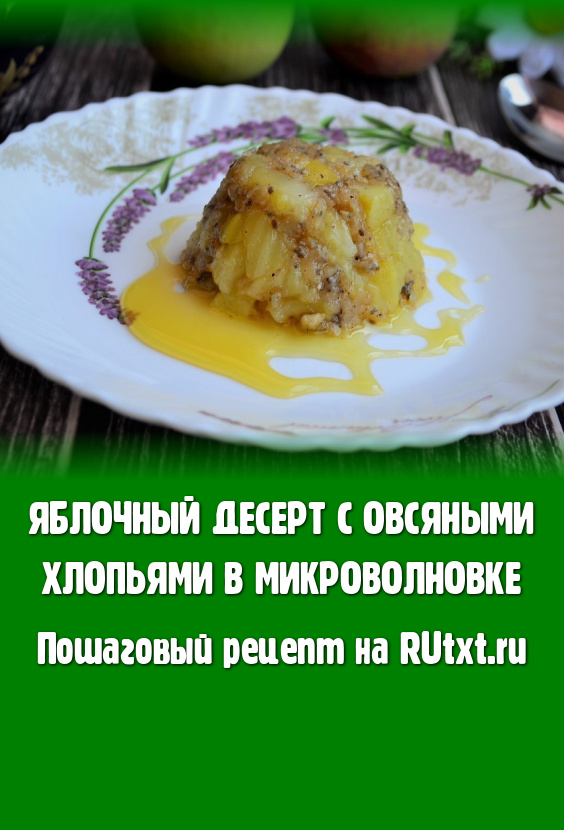 Вкуснейший и полезнейший яблочный десерт, приготовленный с овсяными хлопьями в микроволновке, красиво расположить на тарелке и, по желанию, полив мёдом, подать к столу.