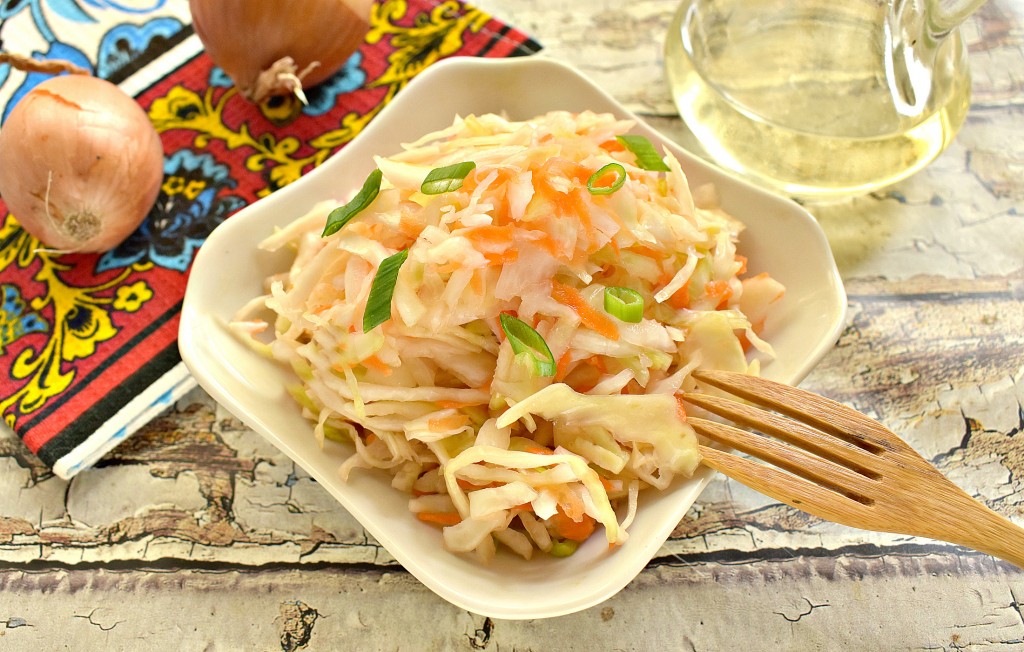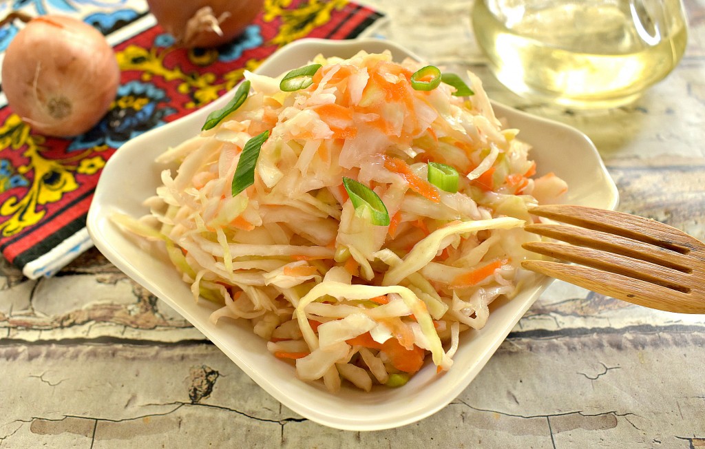 Когда будете подавать квашеную капусту на стол, слегка отожмите её от сока, заправьте ароматным растительным маслом, добавьте к ней нарезанный репчатый лук, перемешайте и у вас будет на столе замечательнейшая закуска! Вот так достаточно просто можно за 3 дня заквасить капусту, вкус и приятное похрустывание которой вам, наверняка, понравится!