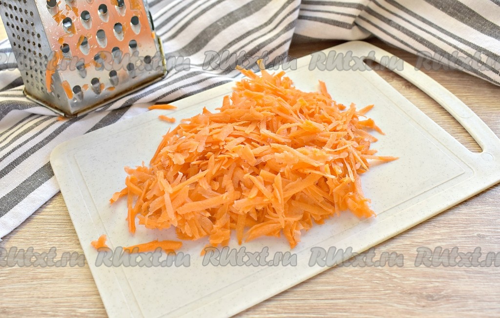 Очищаем морковку, а затем натираем её на крупной тёрке.
