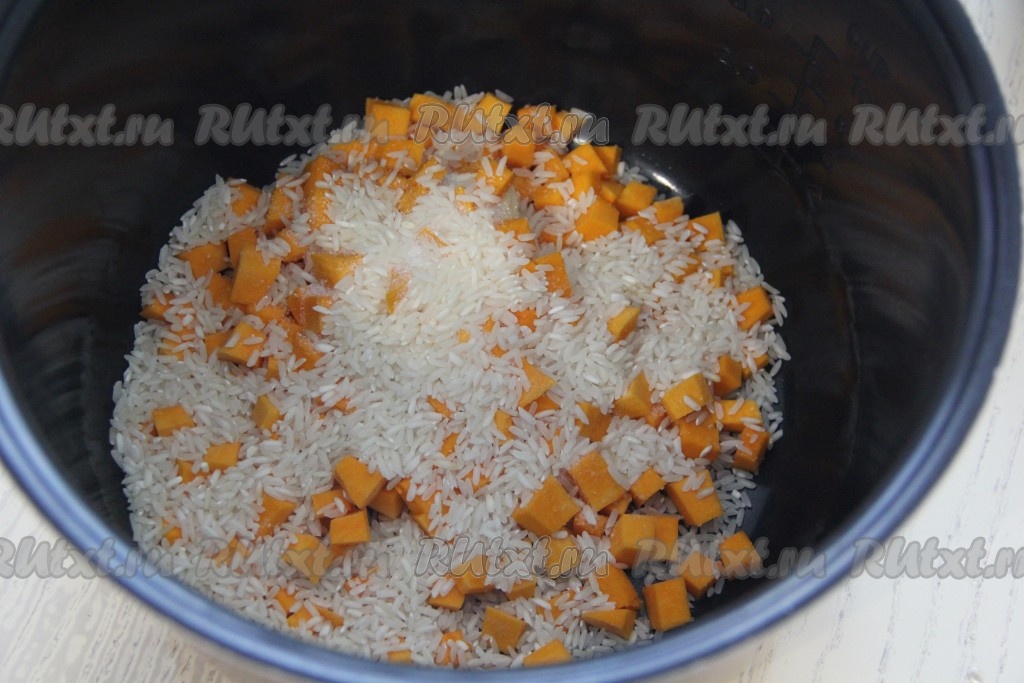 Всыпать рис (я использовала длиннозернистый рис, предварительно его не промывала).