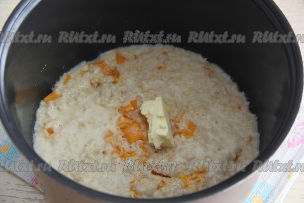 После звукового сигнала в горячую кашу добавить сливочное масло и перемешать.