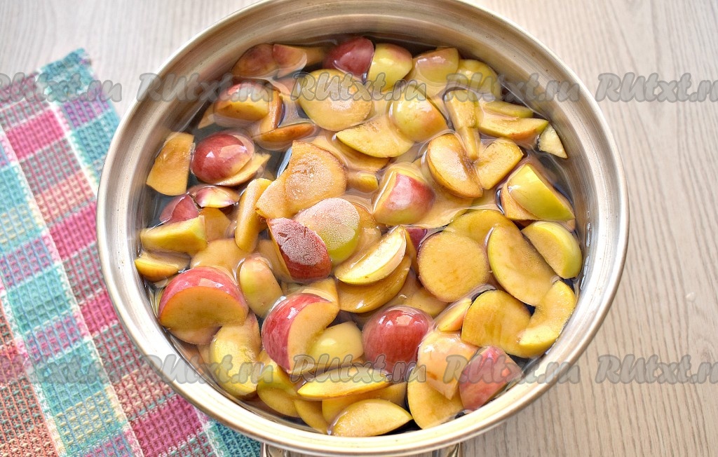 Готовый яблочный компот снимаем с огня, закрываем кастрюлю крышкой, а сверху, по желанию, можно накрыть тканевым полотенцем, даём напитку остыть, за это время он настоится.