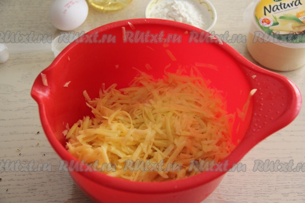 Картошку почистить и натереть на крупной тёрке.