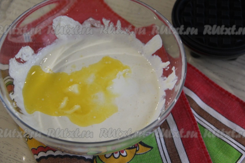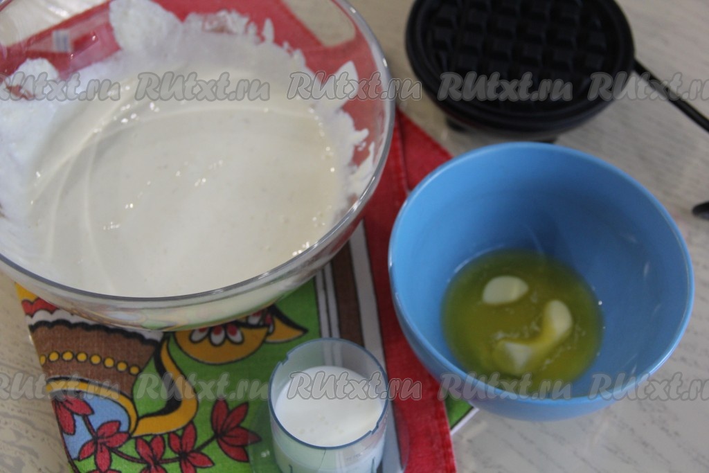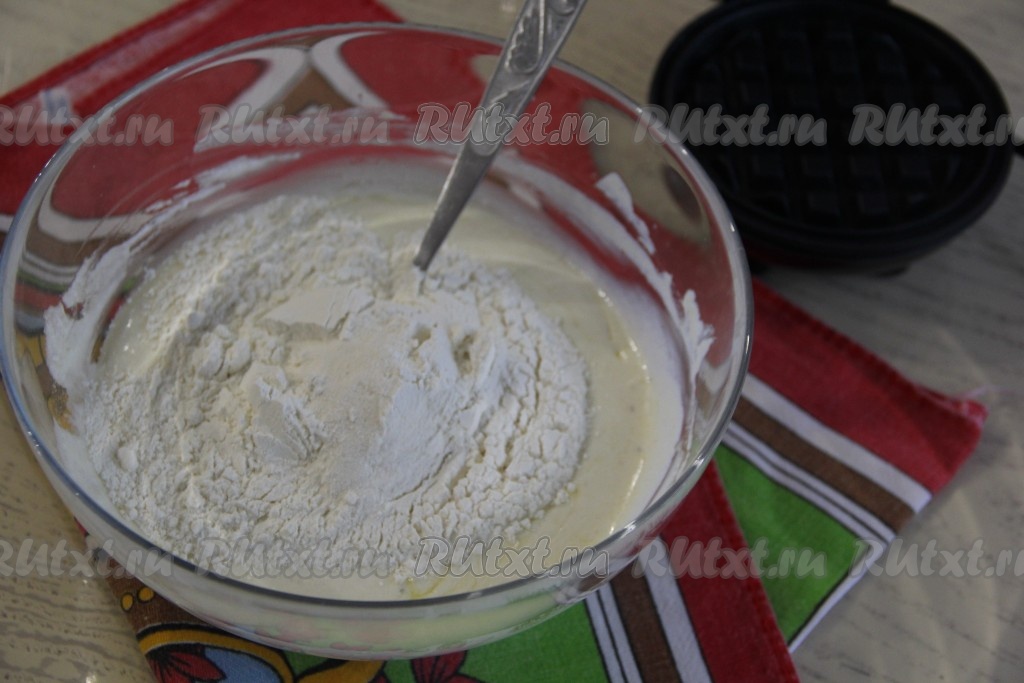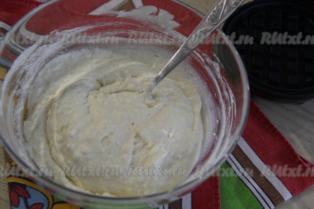 Перемешать тесто ложкой (или лопаткой). Тесто для вафель получится в меру густым и воздушным.