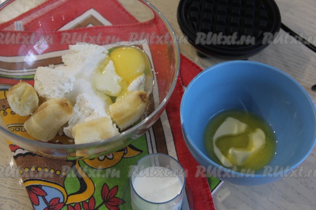 Мягкие, нежные творожно-банановые вафли подать к столу тёплыми.