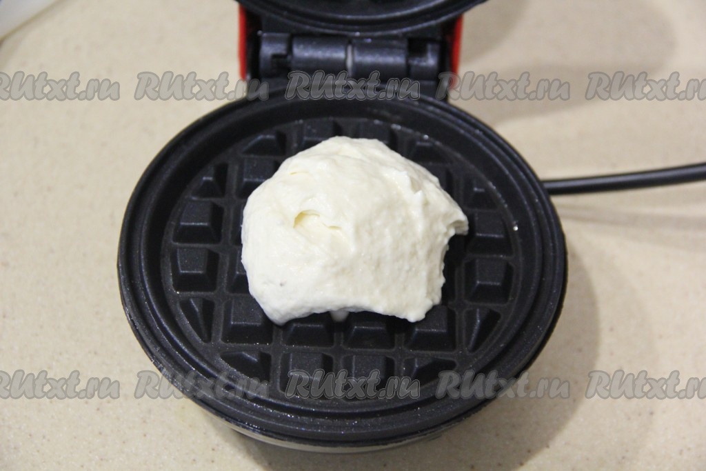 Вафельницу хорошо разогреть и выложить 1 столовую ложку теста. Плотно закрыть крышку.