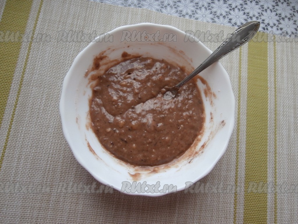 Тщательно перемешать, должно получиться в меру густое тесто (как на фото), напоминающее по консистенции тесто для оладий.