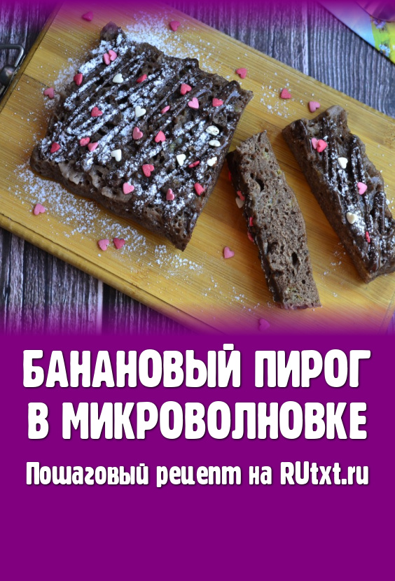 Выпекать банановый пирог в микроволновке при мощности 750 Ватт 6 минут.