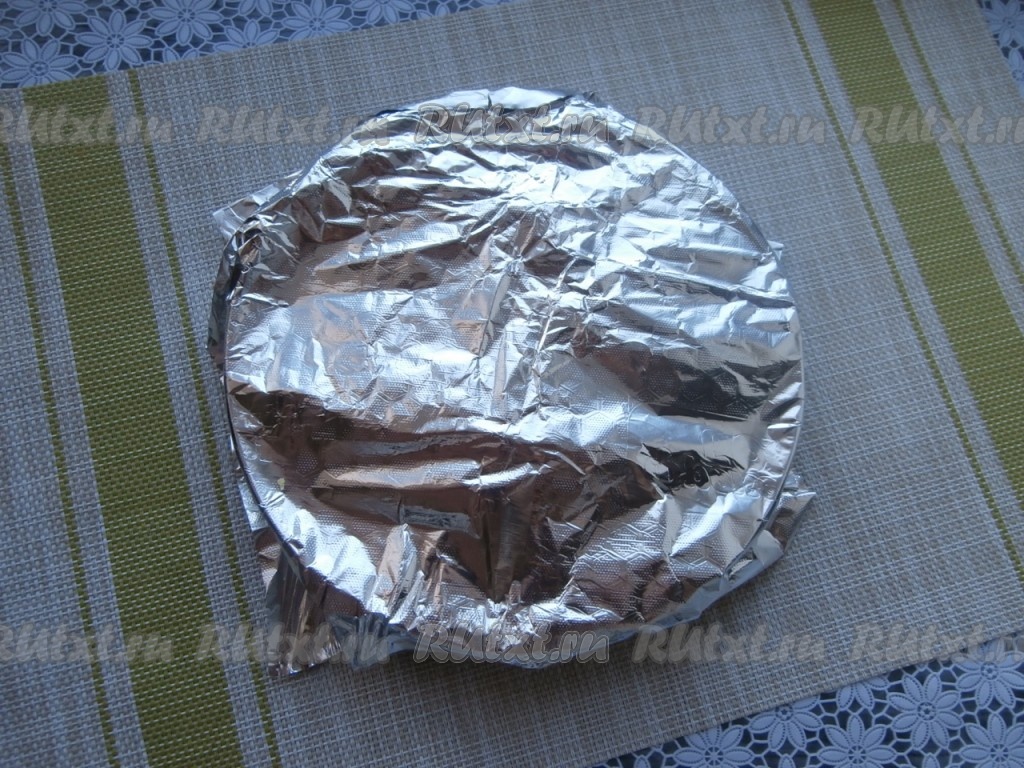Накрыть тарелку с печенью фольгой, чтобы печёнка полностью дошла до готовности.