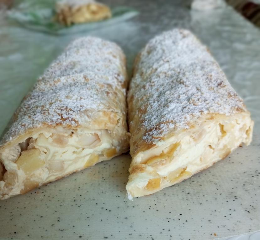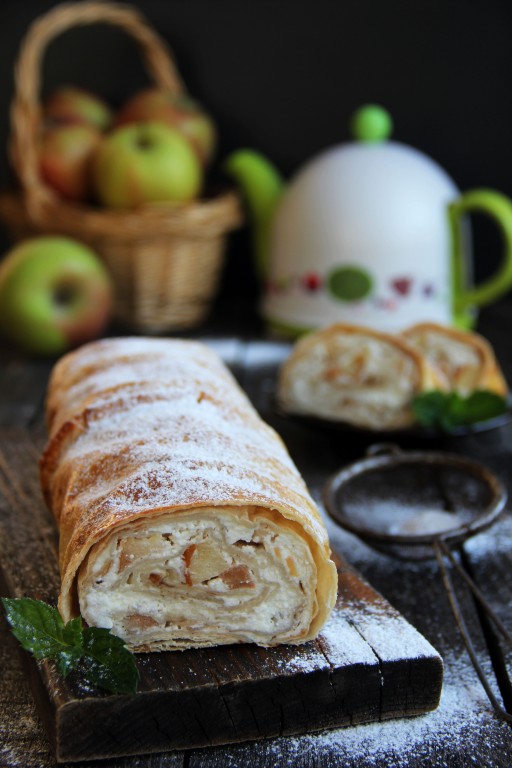 Штрудель из лаваша с творогом и яблоками