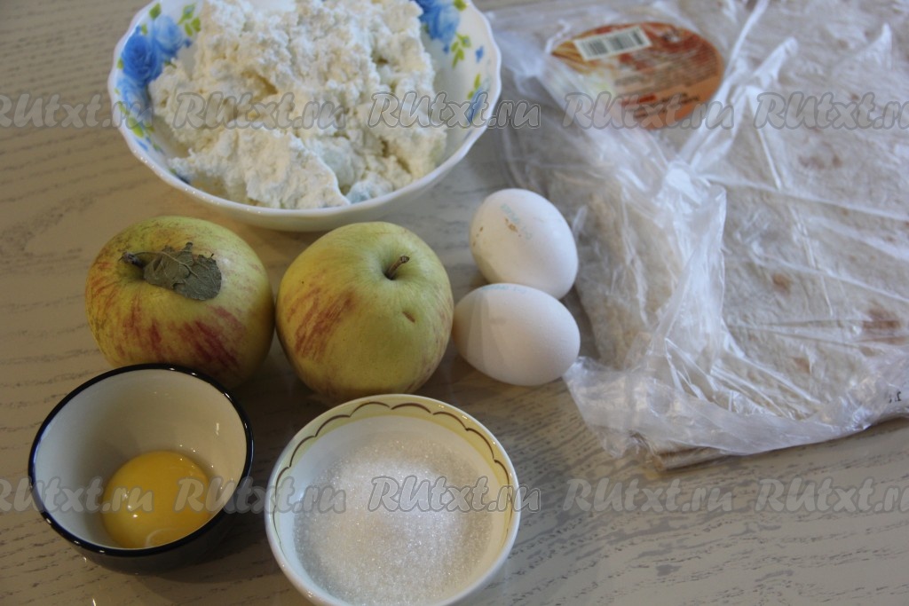 Для приготовления штруделя из лаваша с творогом и яблоками нам потребуется: