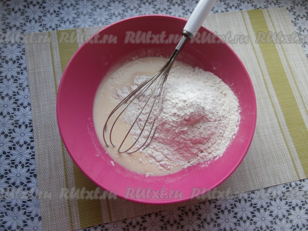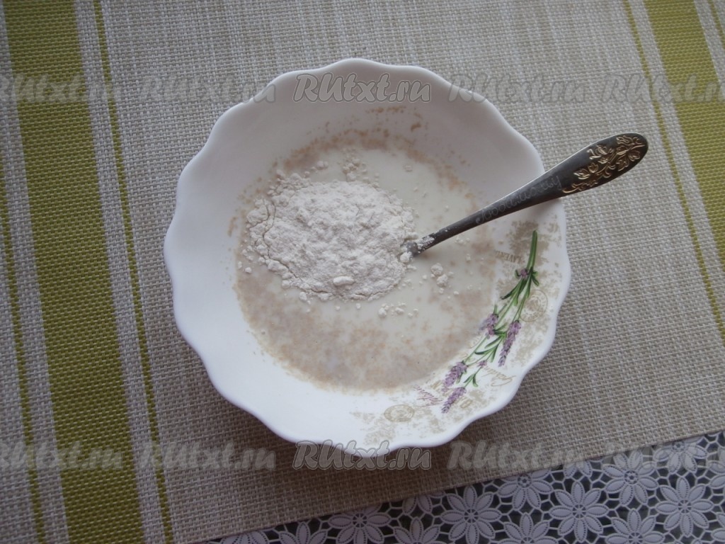 В эту массу всыпать 1-2 столовые ложки муки от общего количества.