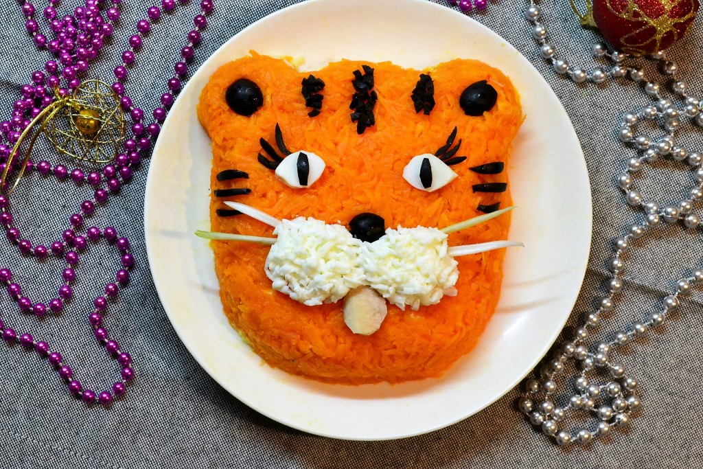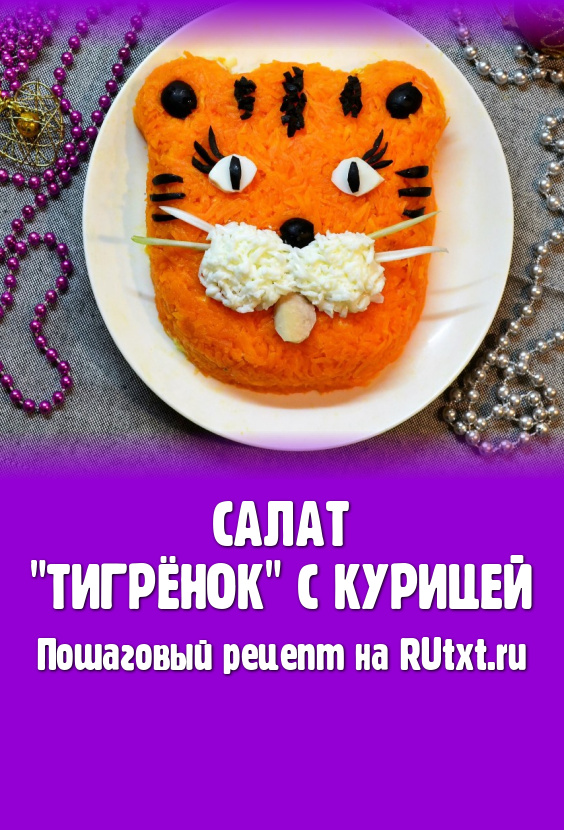 Красивый, яркий, очень вкусный салат "Тигрёнок", приготовленный с курицей, станет украшением не только новогоднего, но и любого другого праздничного стола.