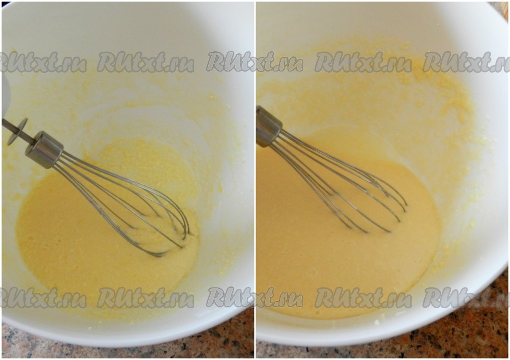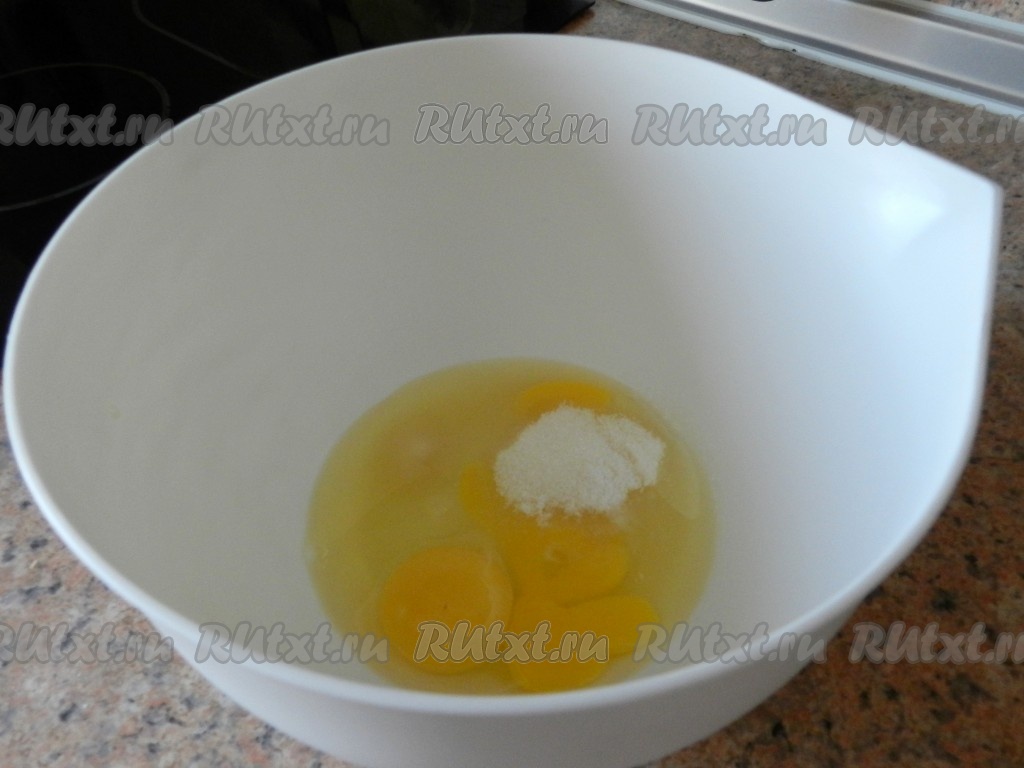 Сливочное масло растопить. Яйца взбить с солью, сахаром, ванильным сахаром.