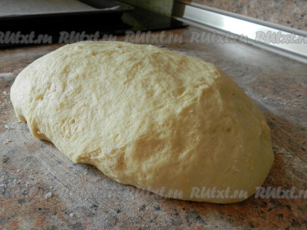 потом переложить на присыпанный мукой стол и тщательно вымесить. Лишнюю муку не добавлять. Тесто должно получиться мягким, эластичным, не липким. Положить тесто в миску, накрыть чистым полотенцем и оставить в теплом месте на 1,5 часа.