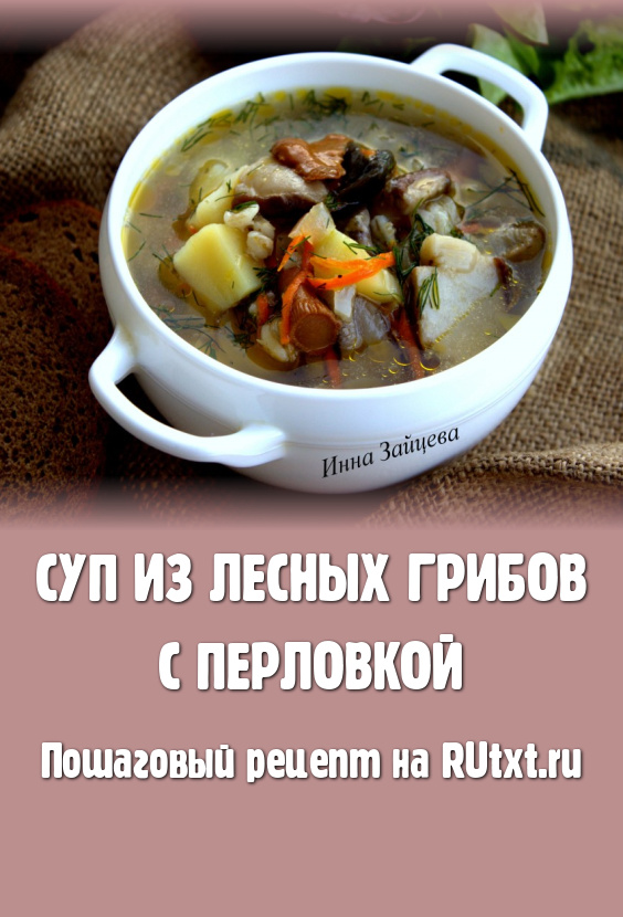 Сытный, вкусный, ароматный суп, сваренный из лесных грибов с перловкой, к столу подавать в горячем виде с ломтиками чёрного хлеба.