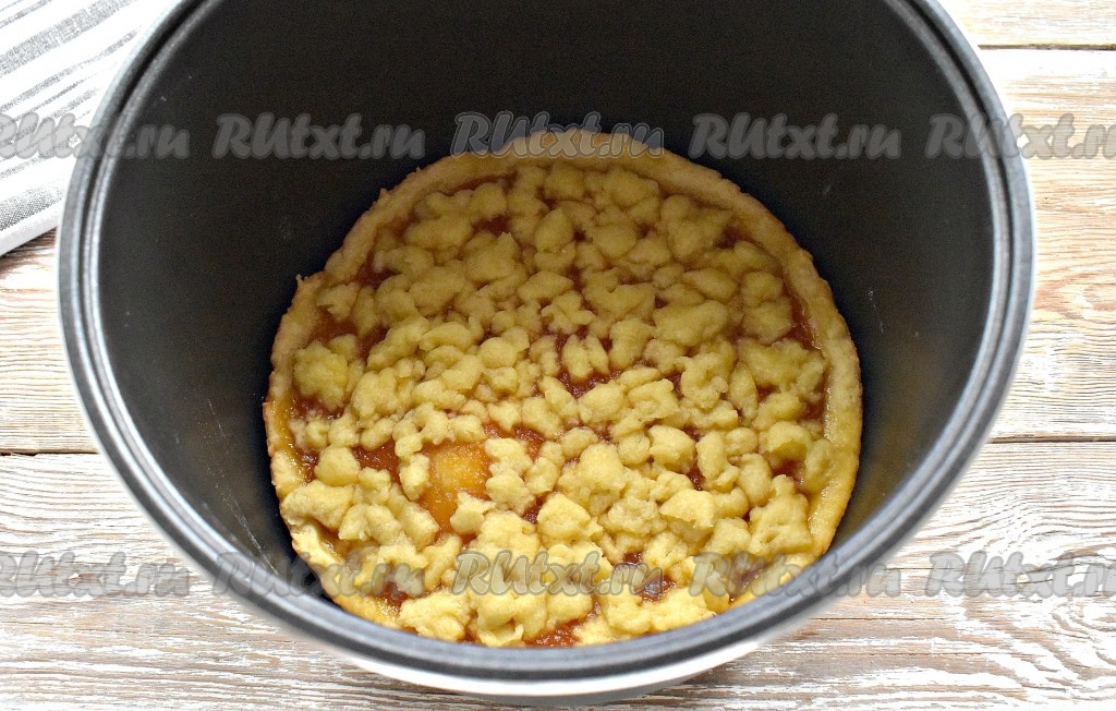 Закрываем мультиварку крышкой. Включаем программу «Выпечка» (у меня мультиварка Redmond, время устанавливается автоматически - 1 час). Выпекаем пирог до окончания программы.