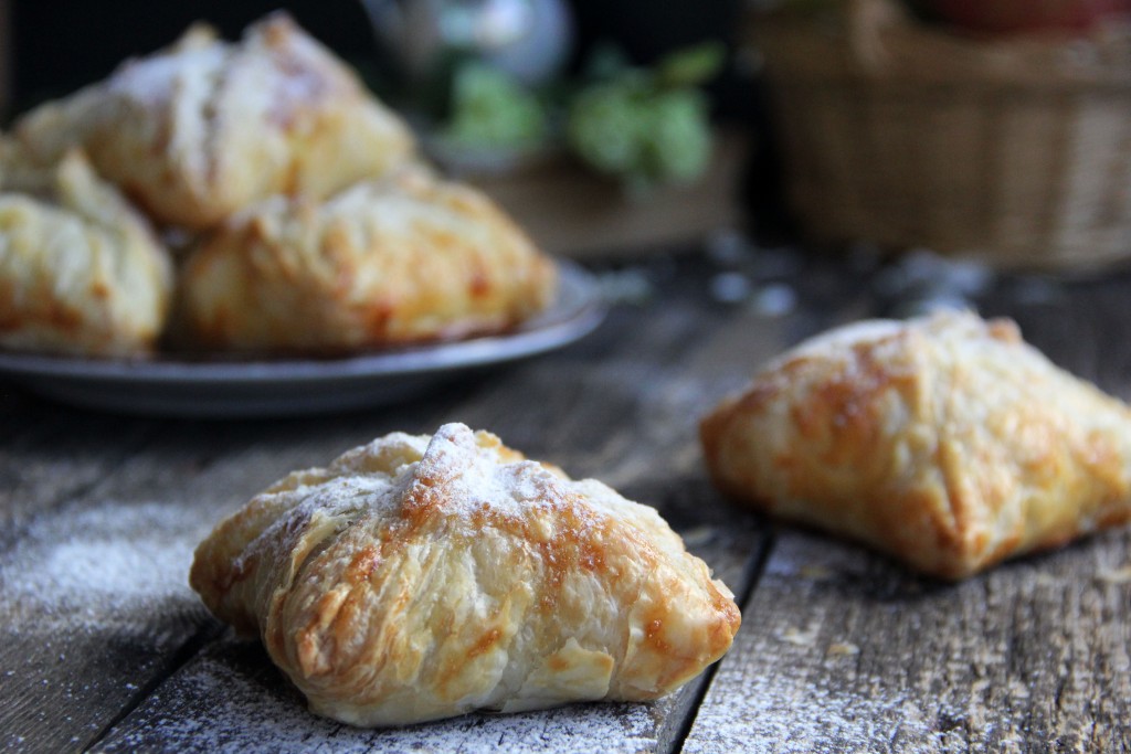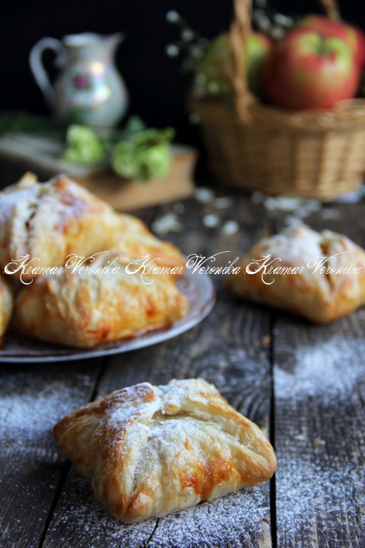 Затем достать из духовки, дать слоечкам немого остыть, присыпать их, по желанию, сахарной пудрой и можно подавать выпечку к столу. Конвертики с яблоками, приготовленные из слоёного бездрожжевого теста, получаются воздушными и очень вкусными!