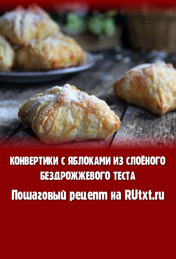 Из покупного слоёного теста можно приготовить отличную выпечку с различными начинками. Сегодня будем печь конвертики из слоёного бездрожжевого теста с яблоками. Выпечка получается воздушной, вкусной и ароматной. Главное - как следует защипнуть слоёное тесто при формировании конвертиков, чтобы во время выпечки начинка не протекла. Всем советую приготовить конвертики по этому рецепту! Быстро, просто и очень вкусно!