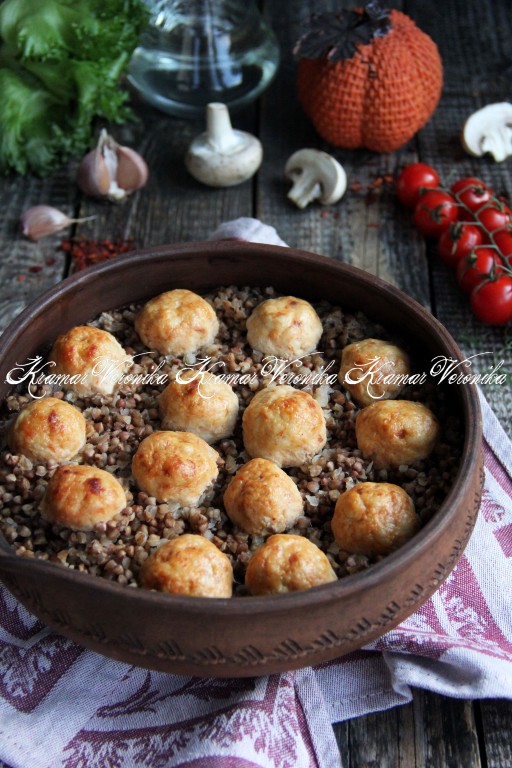 Вынуть форму из духовки, разложить гречневую кашу с фрикадельками по тарелкам и сразу подать к столу. Гречка получается рассыпчатой, сытной и очень вкусной, она великолепно дополняет фрикадельки. Вот так достаточно просто можно одновременно приготовить и мясное блюдо, и гарнир для домашнего ужина или обеда.